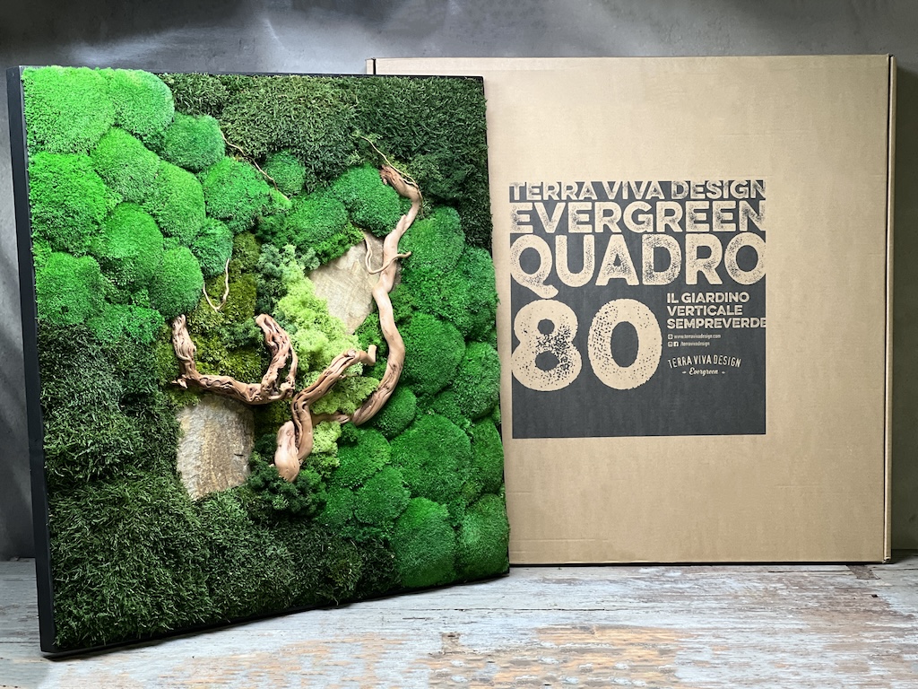 La linea Evergreen - I Giardini Verticali arreda gli spazi con elementi naturali stabilizzati e non richiede alcuna manutenzione. Non richiede acqua, non richiede luce e non attira la polvere: la soluzione ideale per arredare con personalità le tue pareti. QUADRO 80 è proposto in 3 cornici dal colore differente e due Mood: solo muschio oppure muschio ed elementi decorativi naturali.