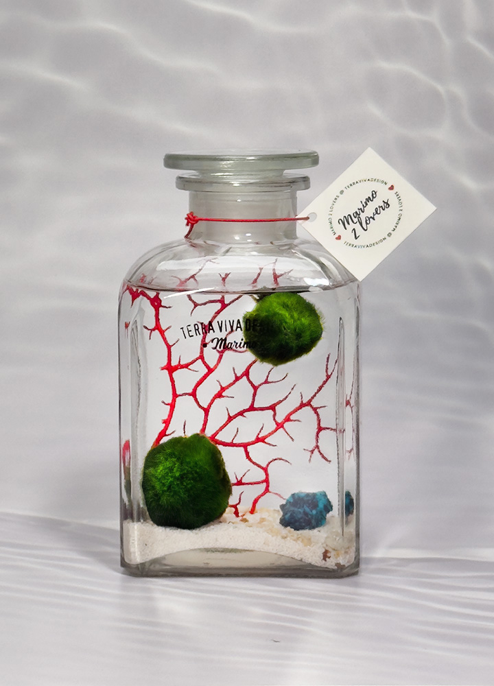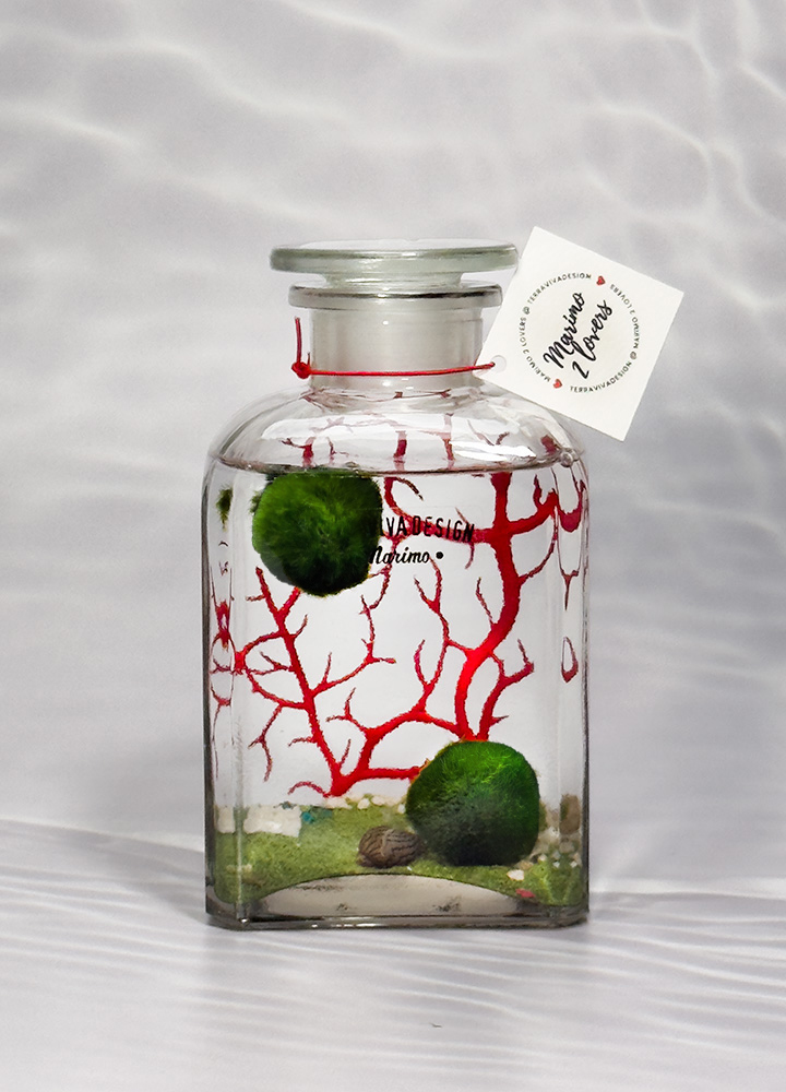 Per garantirne la massima protezione durante il trasporto, il Marimo verrà spedito senza acqua. Una volta ricevuto, basterà aggiungerla per completare la composizione.