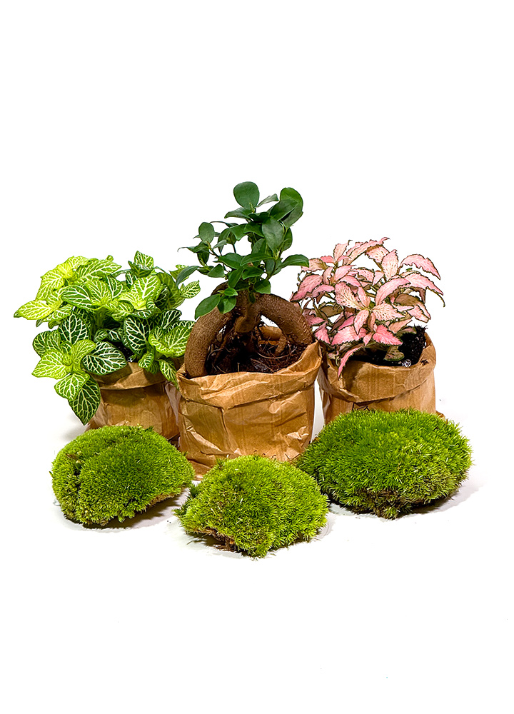 Ogni pianta viene selezionata meticolosamente e imballata con cura per garantire che arrivi fresca, pronta per essere inserita nel tuo terrarium.