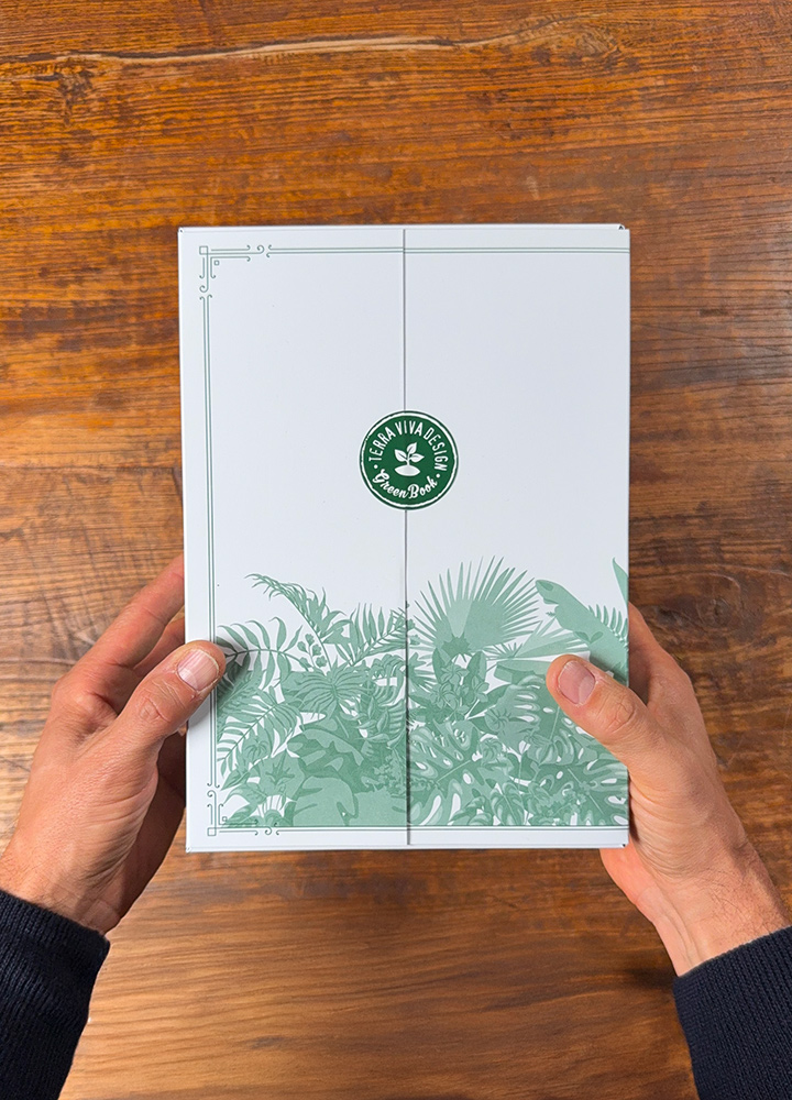 GREEN BOOK viene protetto con un'ulteriore copertina lucida che racchiude il packaging libro e rende l’esperienza di unboxing ancora più elegante e piacevole.