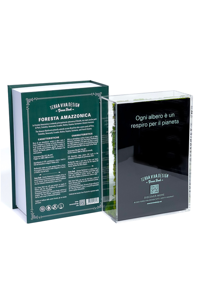 - All’interno eleganti schede illustrano le caratteristiche della collana Green Book, della Biodiversità della Foresta Amazzonica, del progetto One Tree Planted.