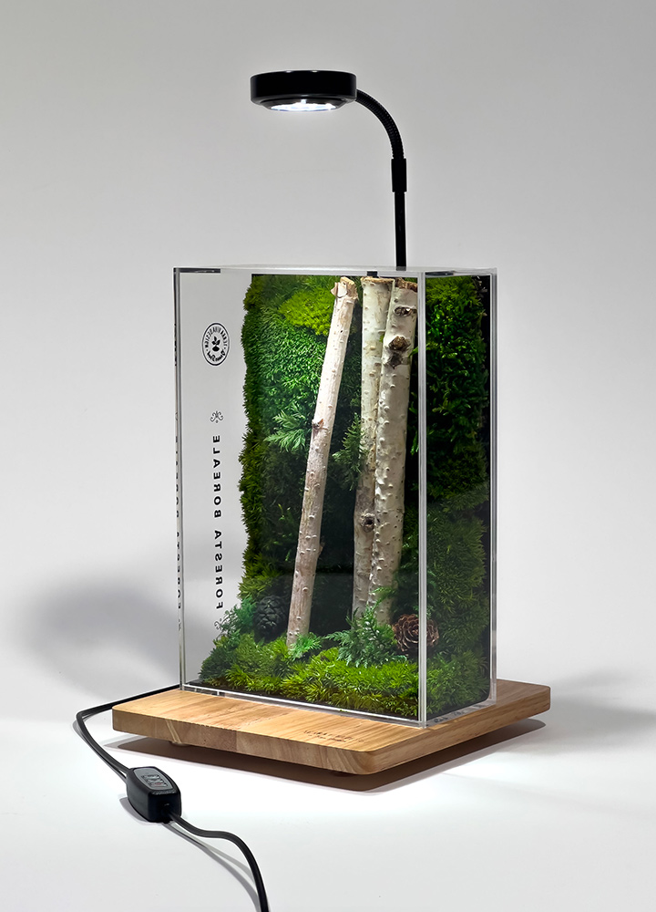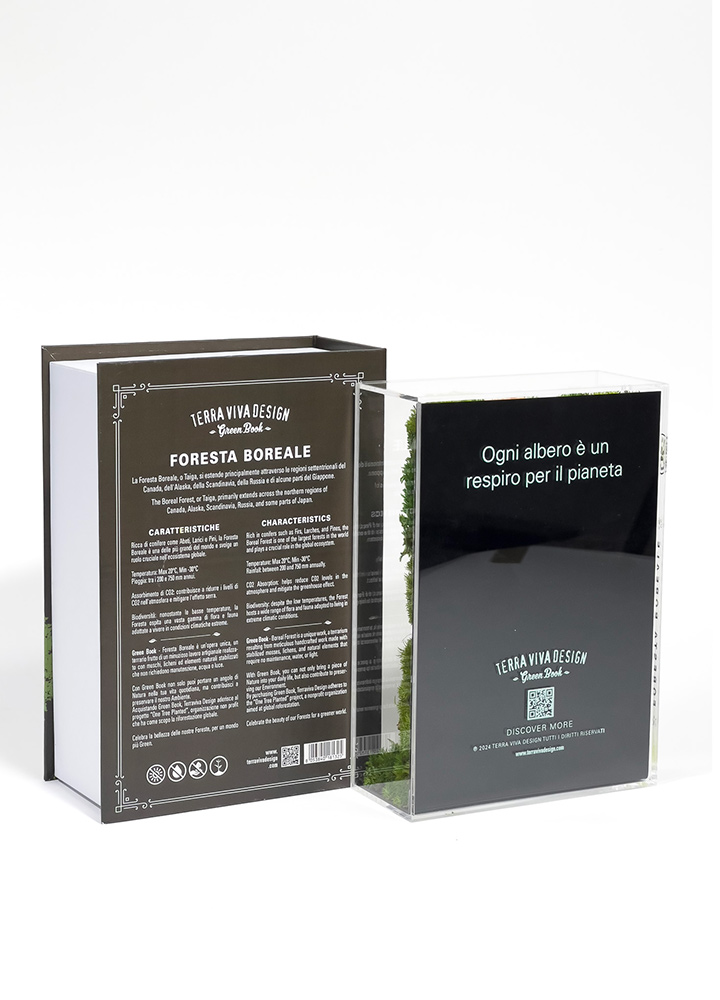 Un ecosistema unico, rappresentato attraverso muschi stabilizzati, legno di betulla ed elementi tipici della vegetazione delle foreste boreali. Il terrario cattura l’essenza della Foresta, creando un’opera naturale che non richiede manutenzione, acqua o esposizione alla luce. Ogni terrario è una creazione artigianale, realizzata con una cura meticolosa per ogni dettaglio e con elementi altamente selezionati, protetta da una teca che custodisce il tuo nuovo angolo di Natura
