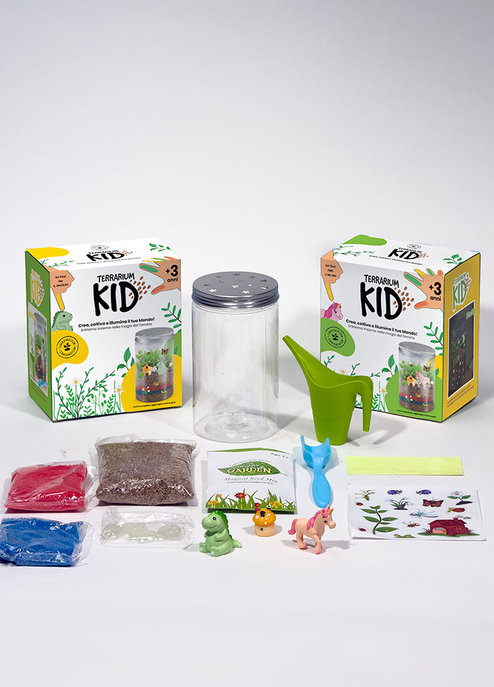 Un vero e proprio gioco botanico che guida i bambini nella realizzazione di un vero terrario, permettendo loro di creare il proprio piccolo mondo naturale e osservare la crescita delle piante giorno dopo giorno.