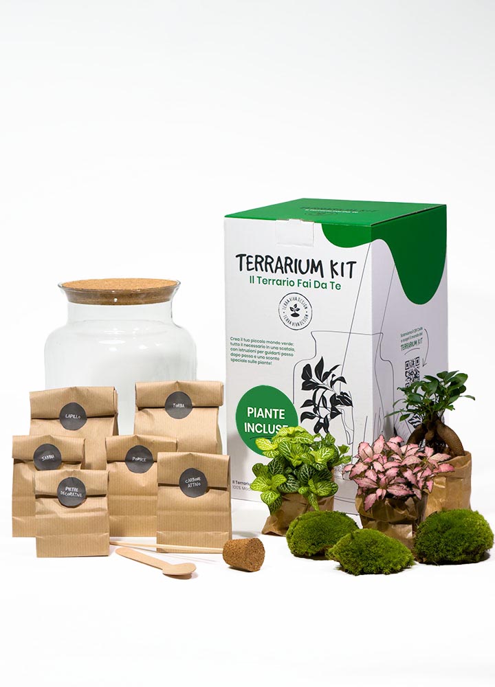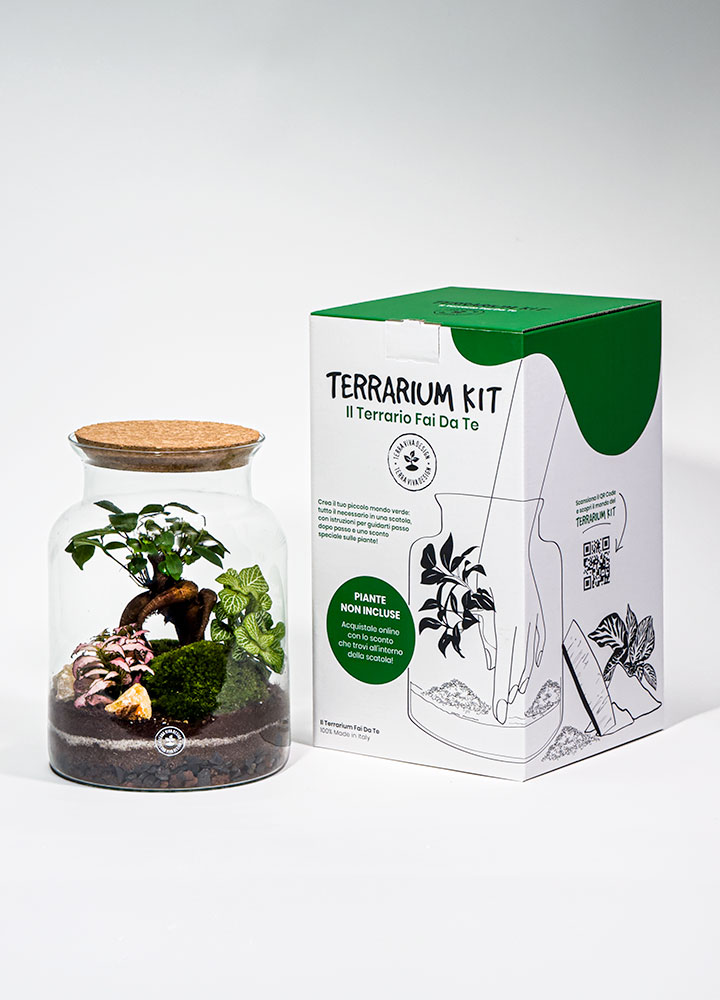 Crea il tuo piccolo ecosistema con il nostro Terrarium Kit, un’esperienza unica e divertente per portare un angolo di verde nella tua casa. Ideale per chi desidera un’esperienza personalizzata, con il Kit puoi creare il tuo terrario in modo facile e divertente!