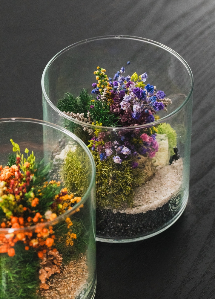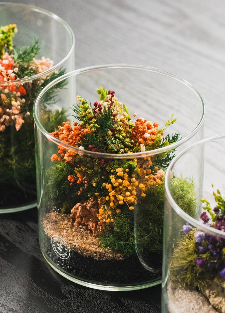 Realizzato a mano in Italia. Ogni CILINDRO è un pezzo unico: le immagini sono indicative e le combinazioni botaniche possono variare leggermente in base alla stagionalità e alla disponibilità degli elementi naturali. Non annaffiare, non necessita di acqua.