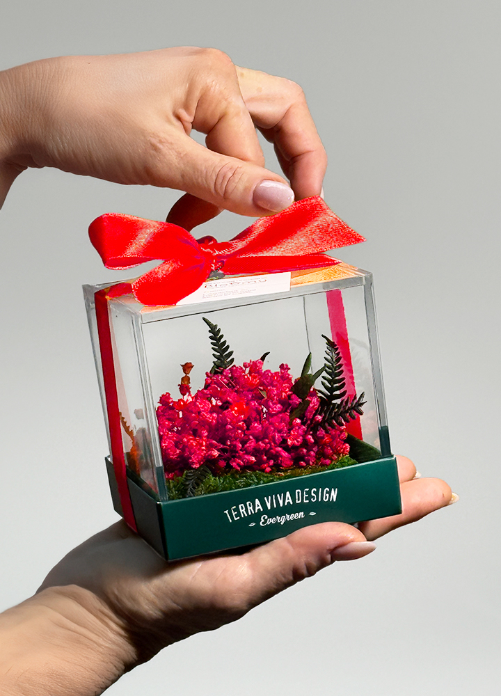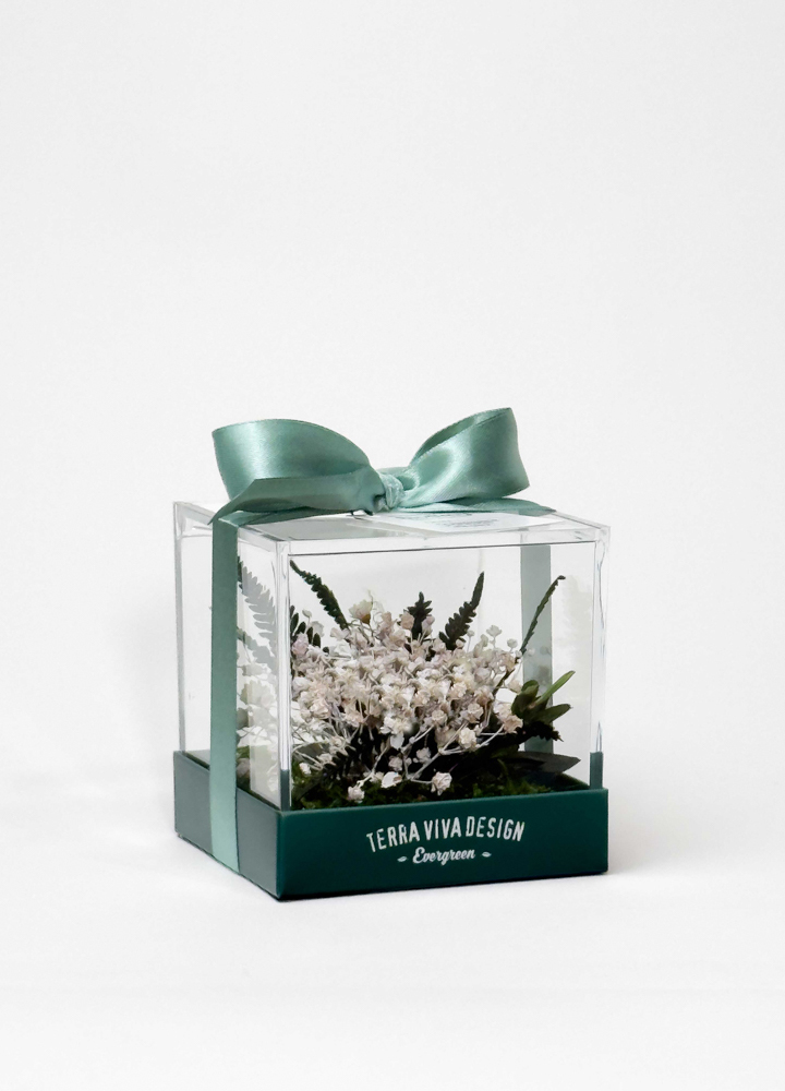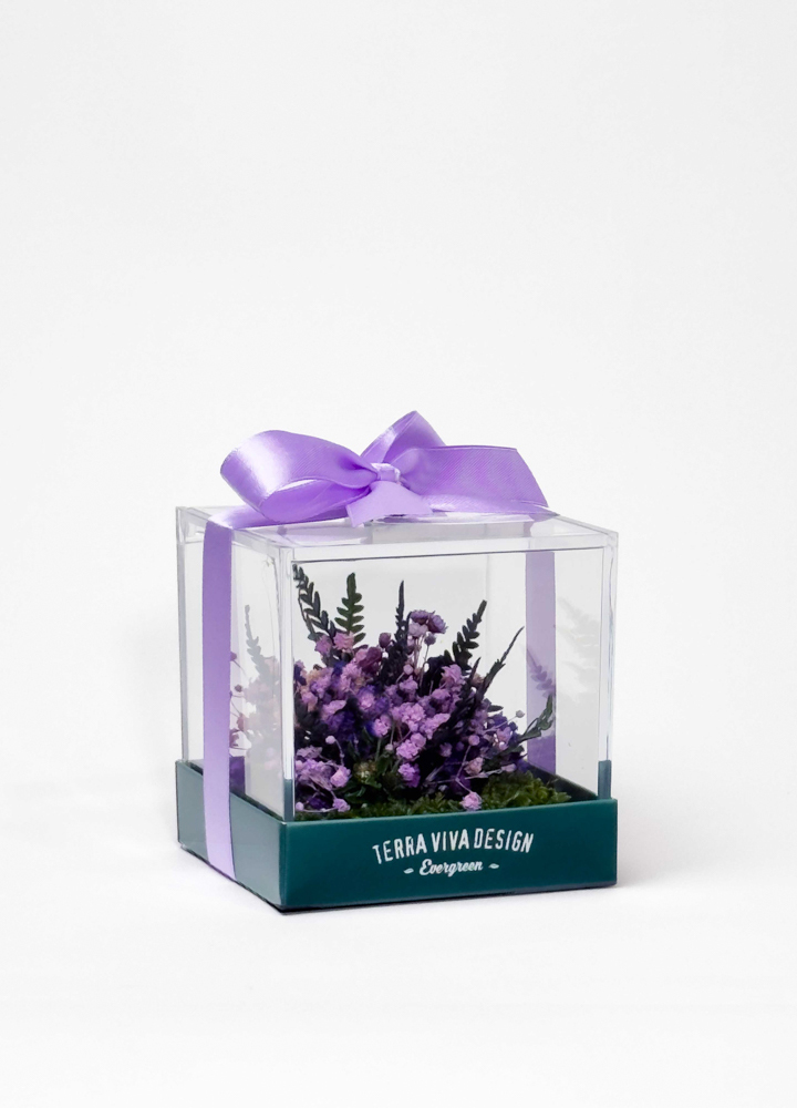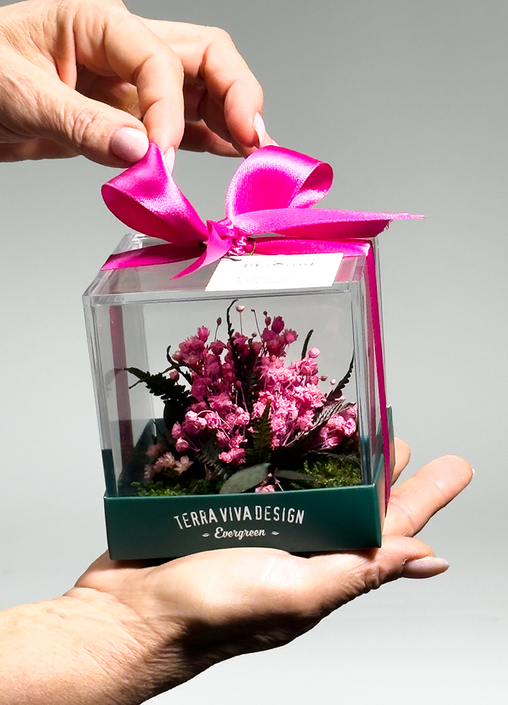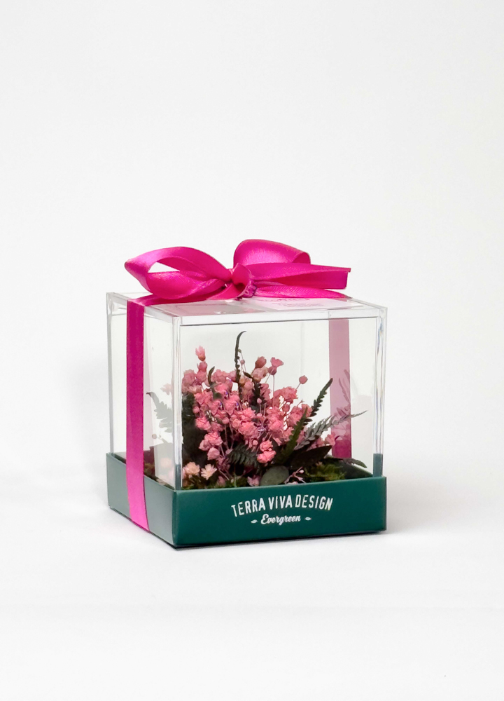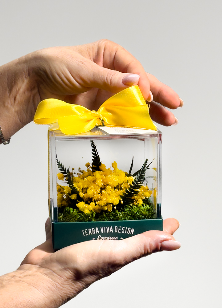 Un piccolo mondo floreale che conserva la bellezza nel tempo, da regalare o da tenere accanto a sé.