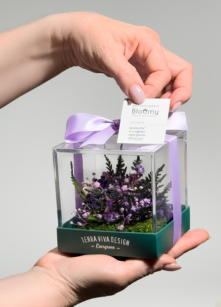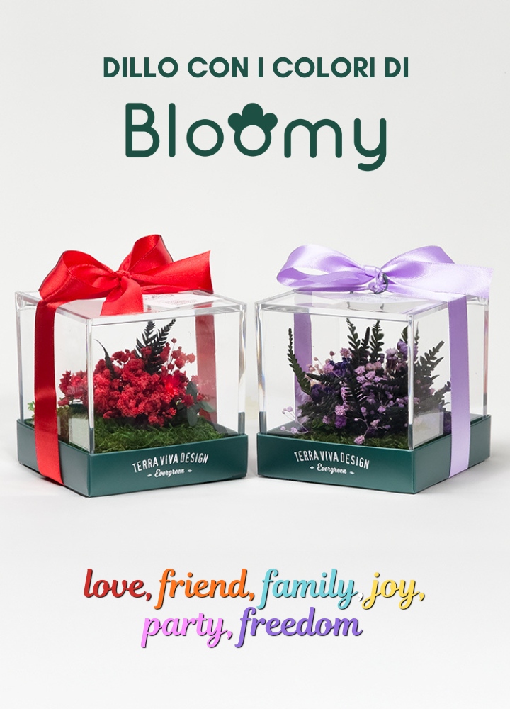 Bloomy è il nostro nuovo Flower Terrarium, una box trasparente che custodisce muschi e un bouquet floreale pronto a parlare per te. Sì perché non è solo un terrario di design, ma un messaggio, un modo per comunicare attraverso il linguaggio del colore.